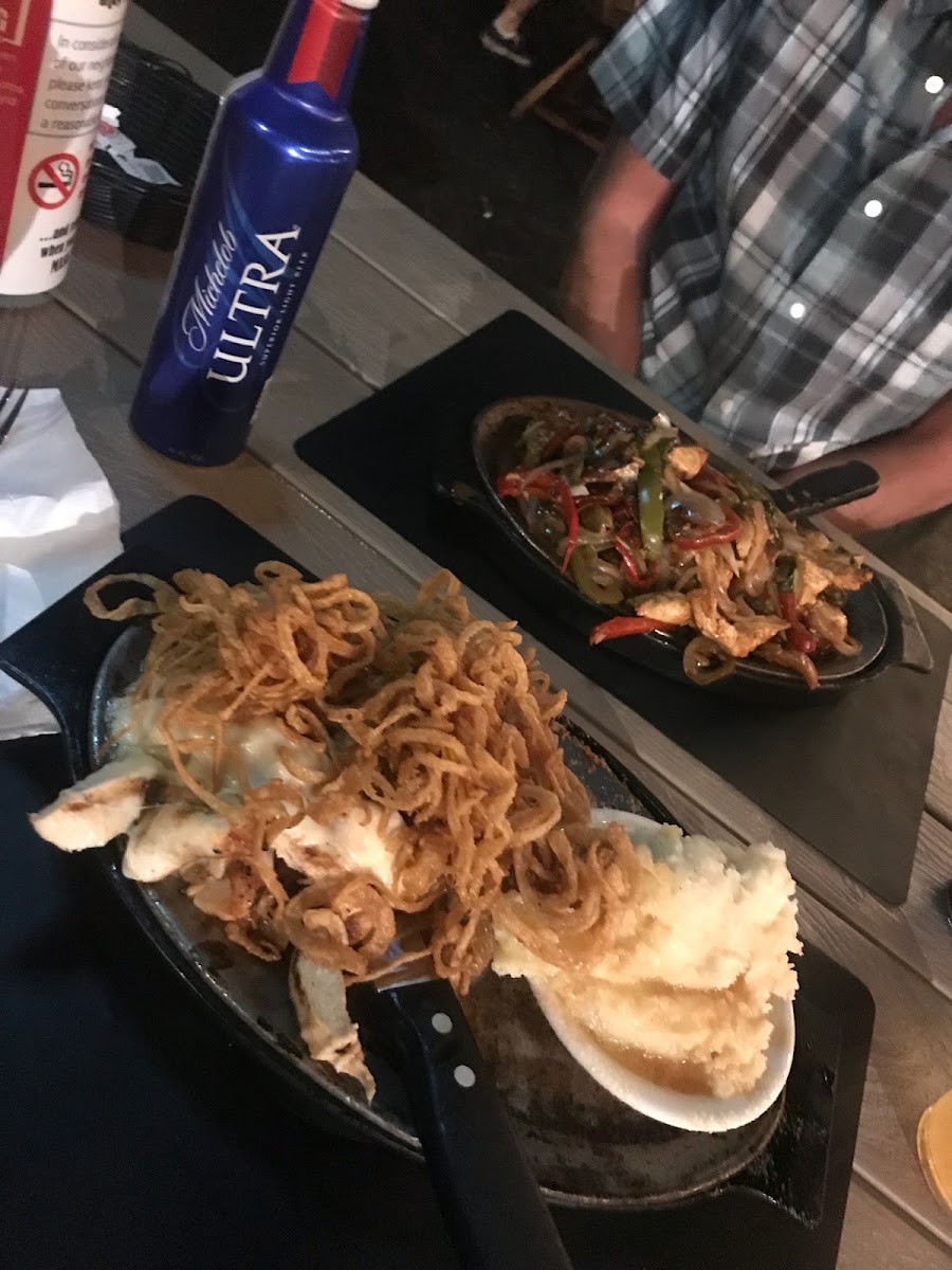 Sizzling Sliced Beef Lobster Ravioli and Shrimp and Chop Chop Salad